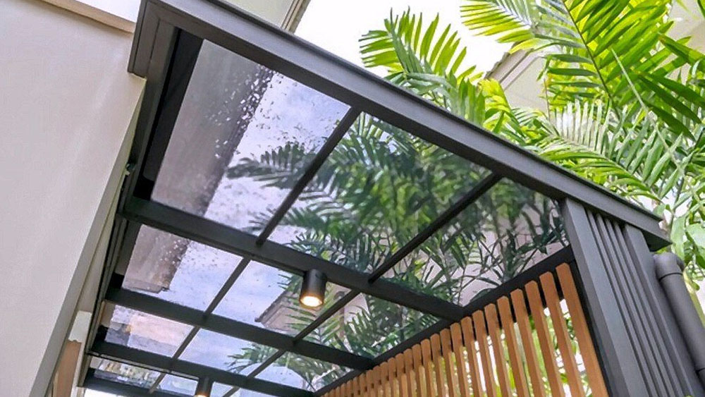 The clear glass panels not only offer a contemporary look but also create an airy and bright atmosphere. This solution combines beauty with function, offering protection from the elements while maintaining an open, airy feel. However, periodic cleaning may be necessary to maintain its clarity and shine.