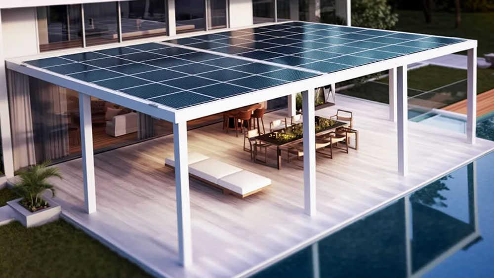 A solar panel roof combines sustainability with modern design. By installing solar panels on your pergola, you can harness the power of the sun to generate renewable energy.
